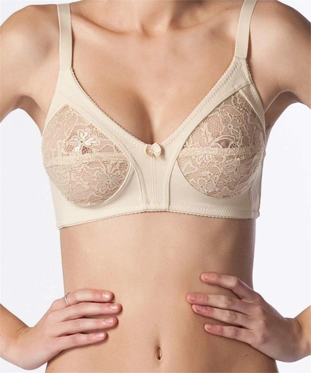 Büyük Beden Uyumlu Ekru Tül Detaylı Günlük Sütyen, B,c Cup Balensiz Konforlu Sütyen