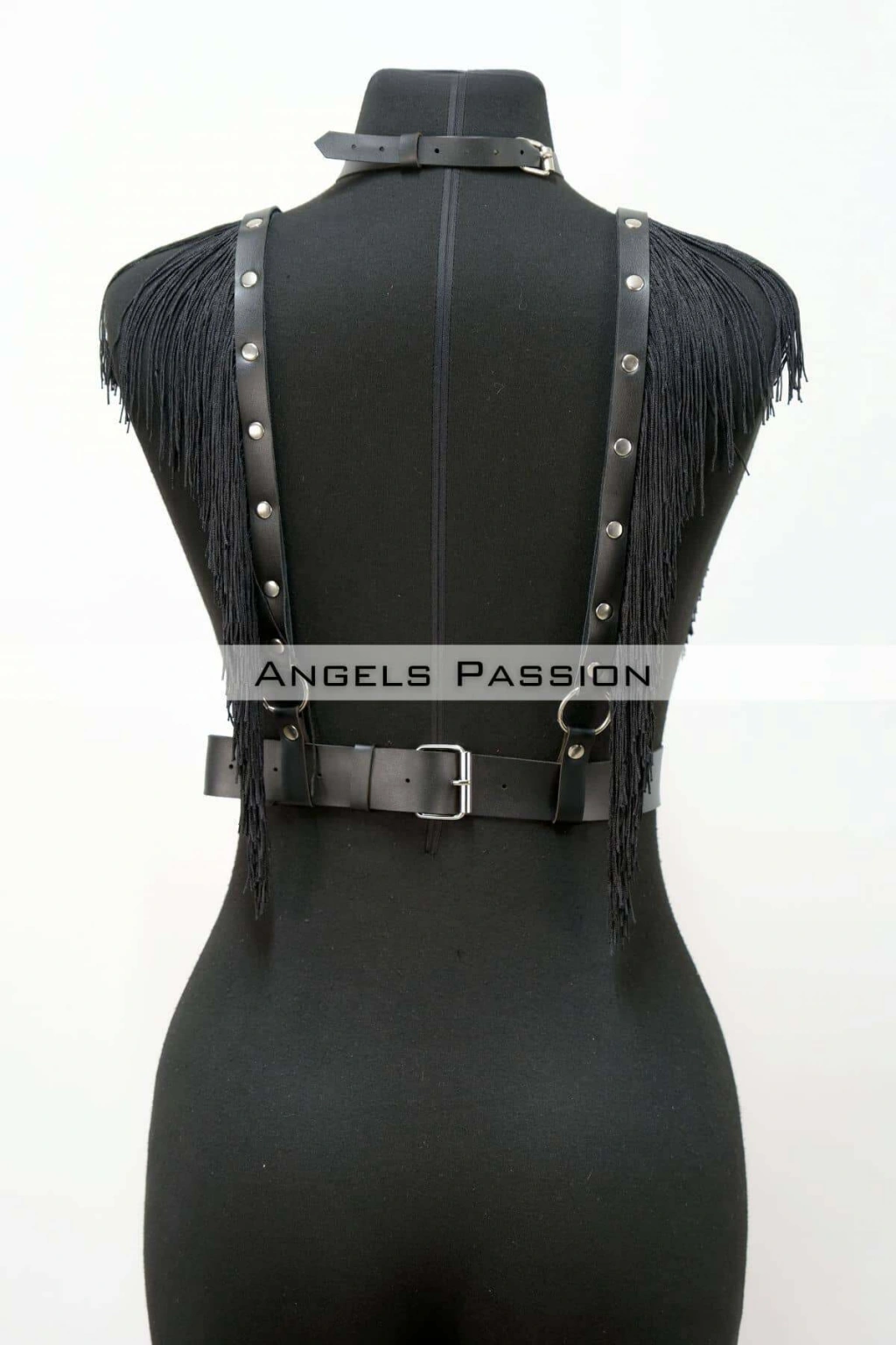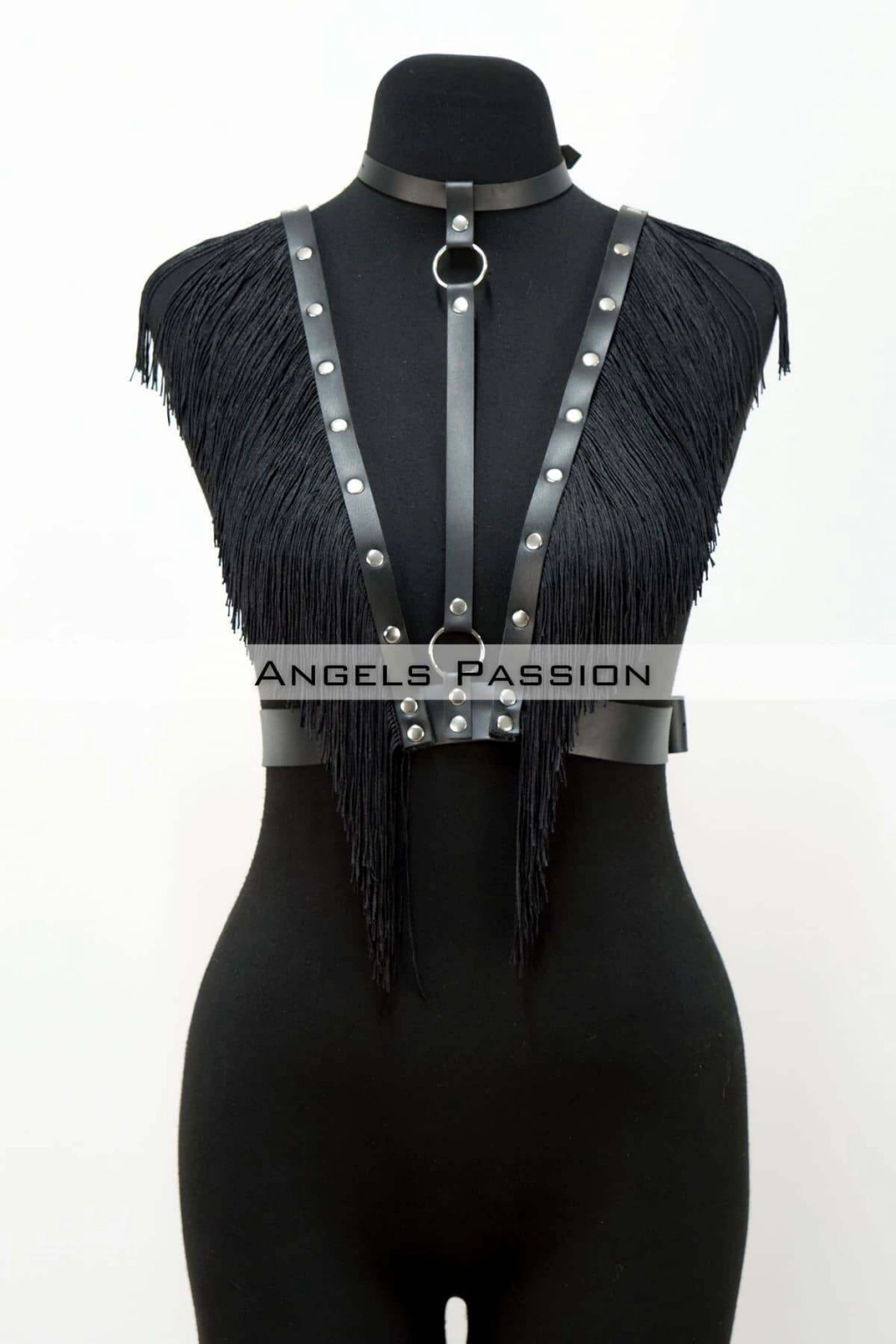 • Püskül Ve Deri Büstiyer Harness, Püsküllü Clubwear, Deri Büstiyer - Brf767