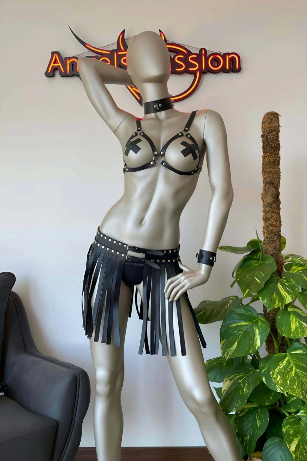 • Püsküllü Etek, Deri Büstiyer Ve Tasma Takım