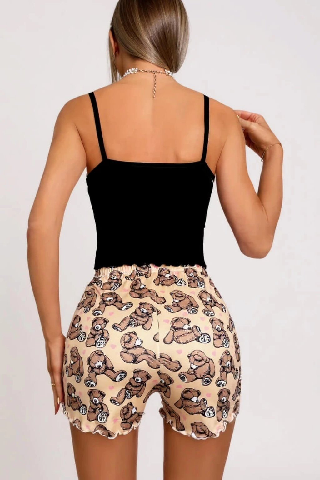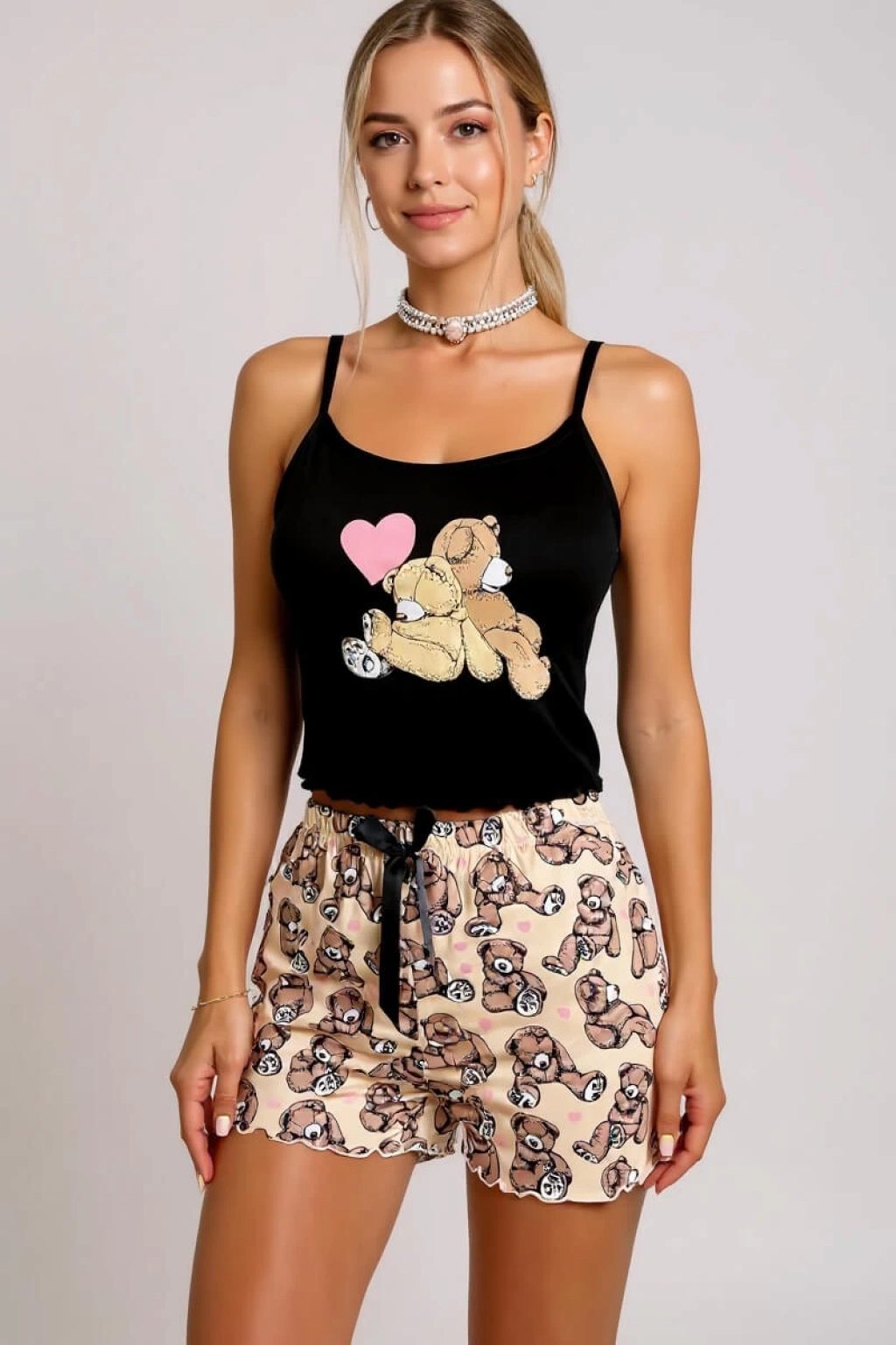 Renkli Ayıcık Desenli Askılı Şortlu Kadın Pijama Takımı