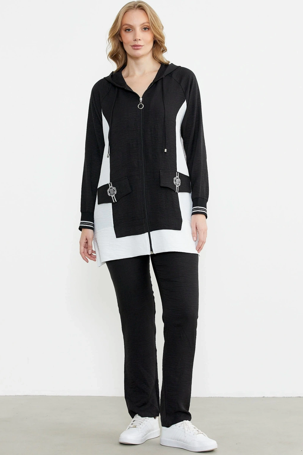 Sementa 76448 Keten Görünümlü Kapüşonlu Tunik Takım