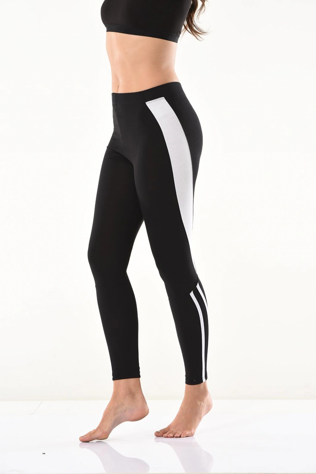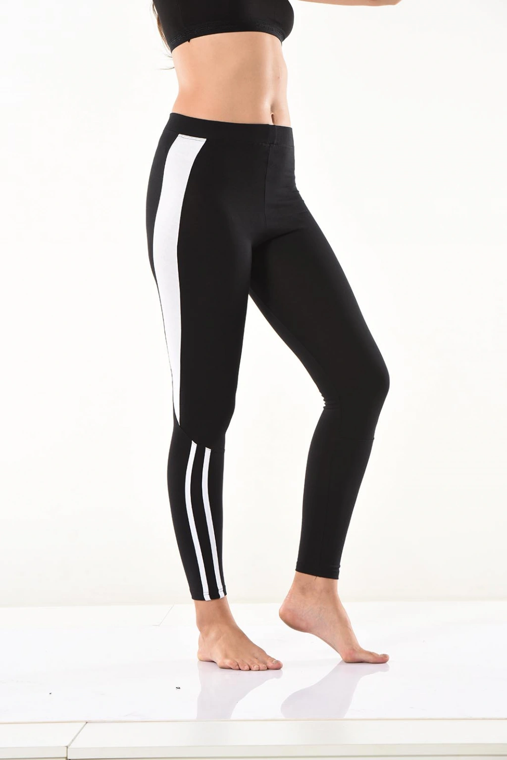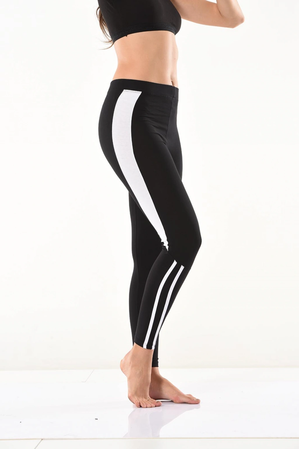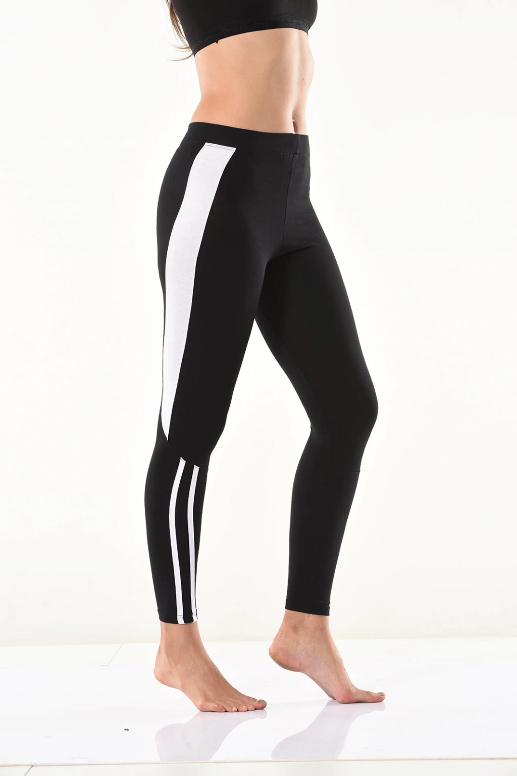 Yeni sezon şerit detaylarıyla şık bir görünüm kazandıran kadın tayt modelidir.
