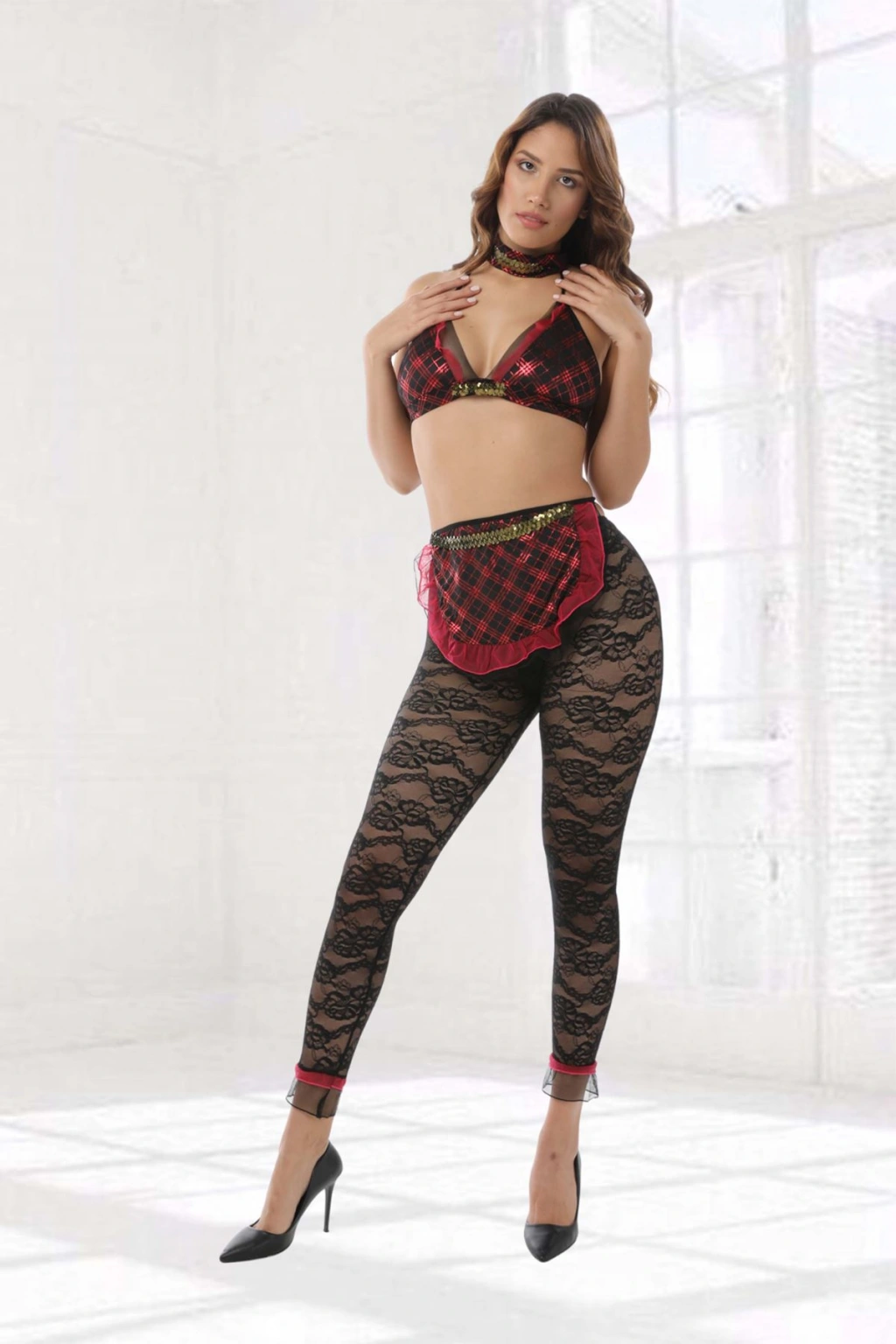 4004 Siyah Kırmızı Fantazi Hizmetçi Kostüm Üstün Kalitede Kumaşlardan üretilmiştir. Özel Paketinde Gönderilmektedir. Kumaş türü : %50 Dantel %50 Polyamid Ürün içeriği : Sütyen + Tayt + Saç Bandı + Önlük S/M - (36-38) L/XL - (40-42) Bedenlere uygundur.