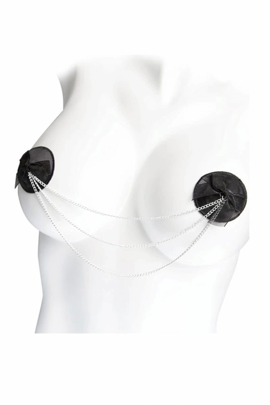 Siyah Zincir Detaylı Fantezi Göğüs Ucu Kapatıcı