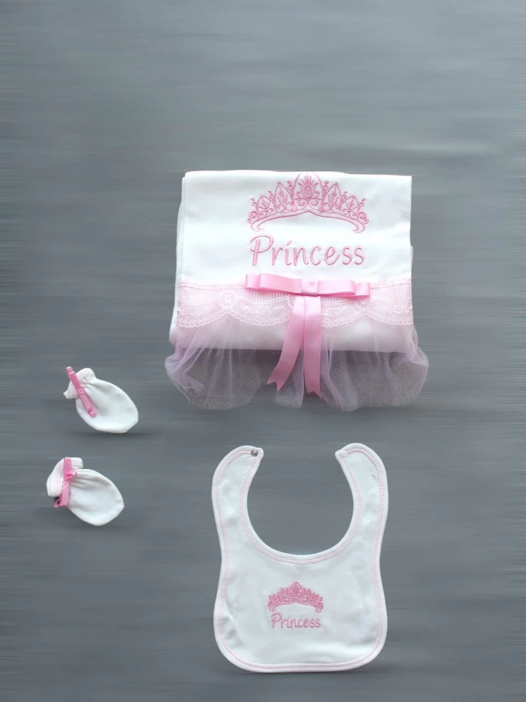 Taçlı Prensesim Nakışlı %100 Cotton Antibakteriyel 10lu Zıbın Takımı Hastane Çıkışı