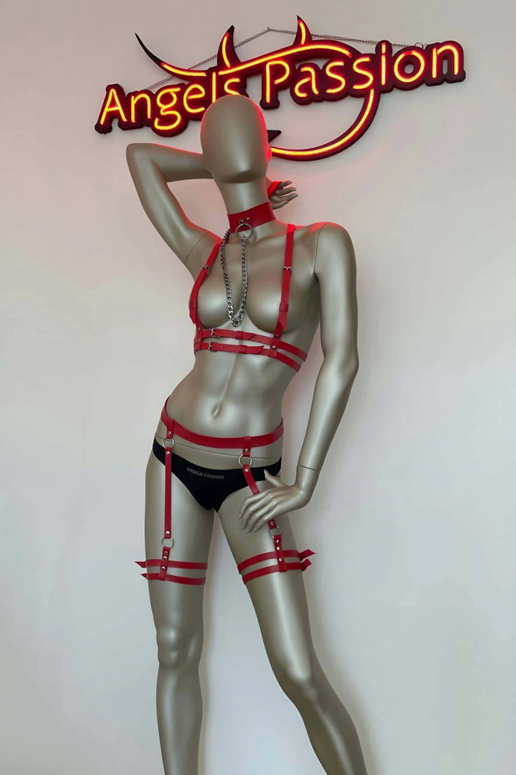 • Tasma Detaylı Şık Deri Harness Jartiyer Takım