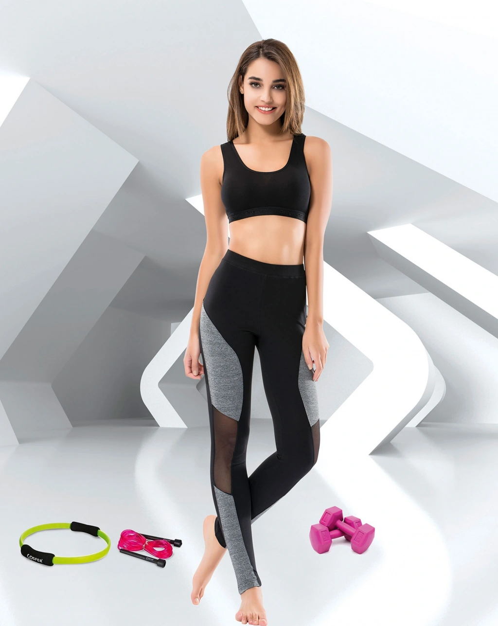 Siyah Mı Emay 3921 Soft Seamless Ripli Tayt Yoga Takımı