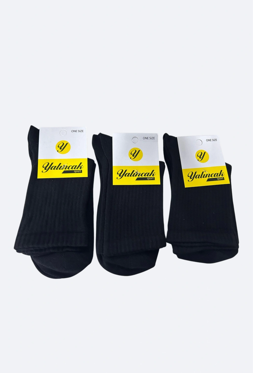 • Yalıncak Yarım Konç Kolej Çorap Siyah Renk 3 Adet Desensiz Model