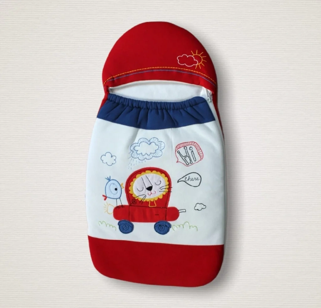 Yenidoğan Arabalı Aslan Nakışlı Fermuarlı Şapkalı Klasik Kundak Bebek Battaniyesi