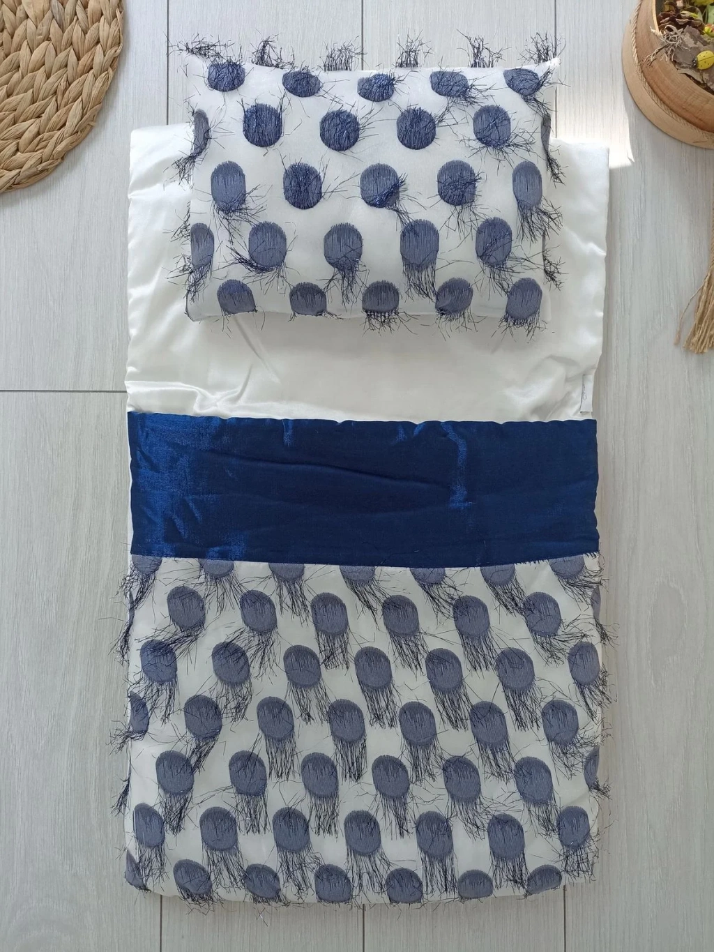 Yenidoğan İzmir İncisi Tül İşlemeli Pamuklu Fiyonklu Kundaklı Lüks 3lü Alt Açma Seti Lacivert