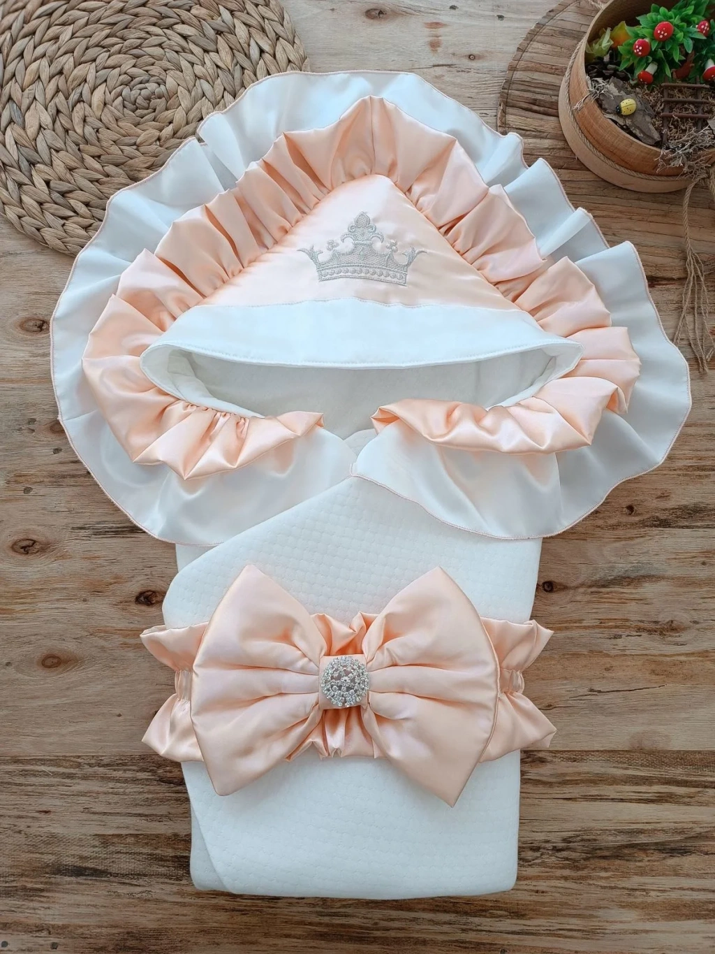 Yenidoğan Mehtap Lüks Kelebek Taç Nakışlı Bebek Battaniyesi Kundak