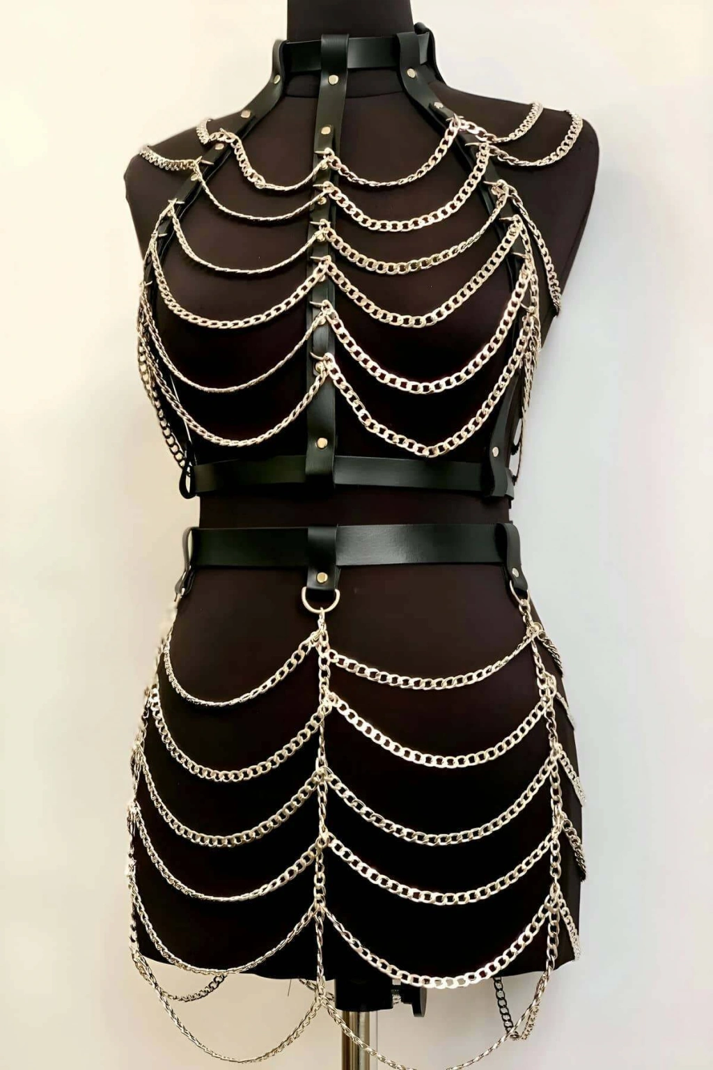 • Ürün ve paket içeriği: 2 parça (1 ad. Zincirli Göğüs Harness , 1 ad. Zincirli Etek Harness) Vücut çorap dahil değildir.